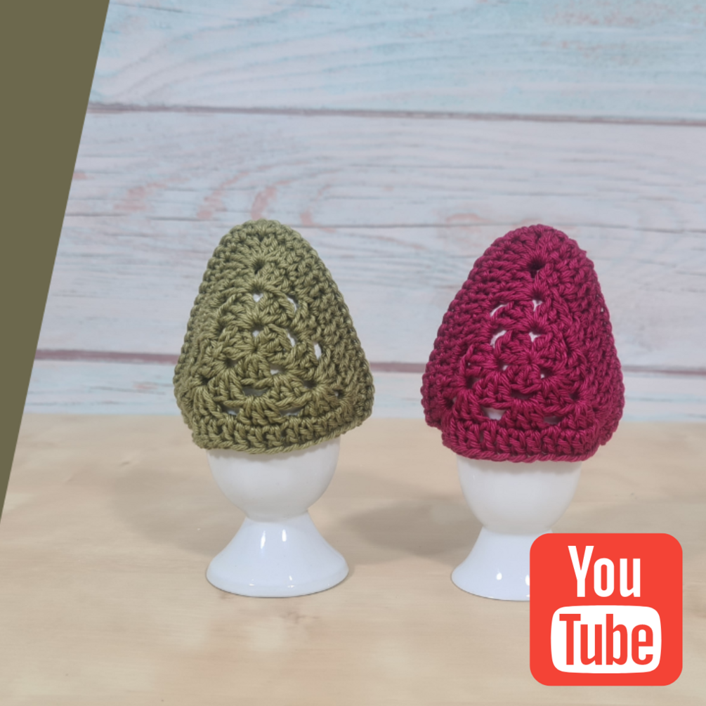 In this video I show you how to crochet an egg cover with granny triangles. You can slide this cover over an egg to keep it warm.