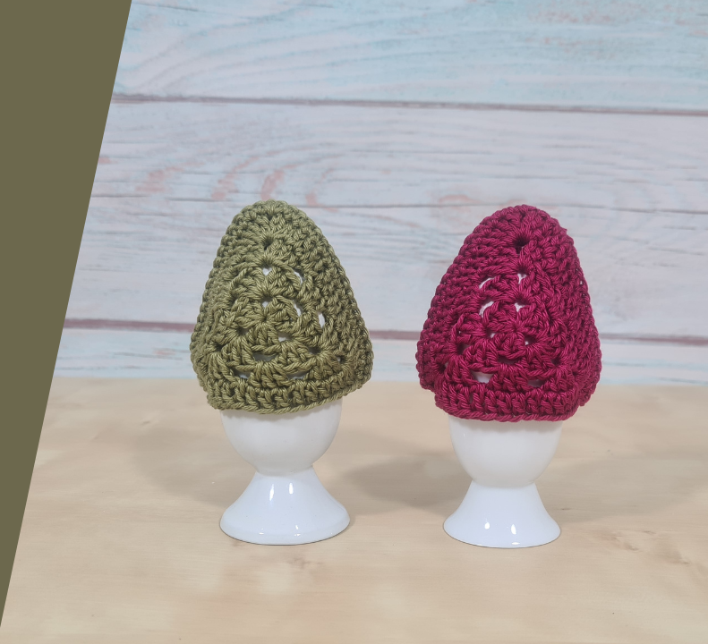 In this video I show you how to crochet an egg cover with granny triangles. You can slide this cover over an egg to keep it warm.